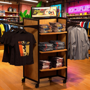 लकड़ी की दुकान फिटिंग और प्रदर्शन खुदरा परिधान मोबाइल डिस्प्ले के साथ हुक्स परिधान और हैंगबार के साथ